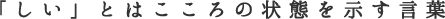 苦しい、悲しい、厳しいなどネガティブなこころの状態も、そして嬉しい、楽しい、優しいなどポジティブな心の表現にも常に「しい」は着いてまいります。